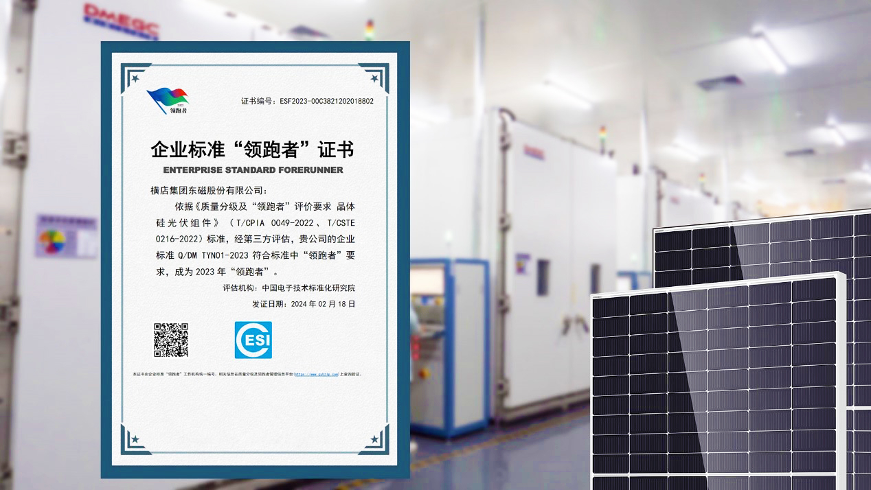 克日,横店6731顶级游戏依附在光伏行业制订的高水平标准,喜获由中国电子手艺标准化研究院揭晓的2023年度企业标准“领跑者”证书,成为业内首批十家“领跑者”之一 。